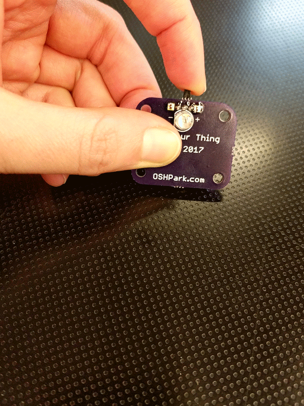 2. Test out your LED. The longer end of your LED is the positive (+) side and will go on the flat side of your battery - it also has a + symbol on it